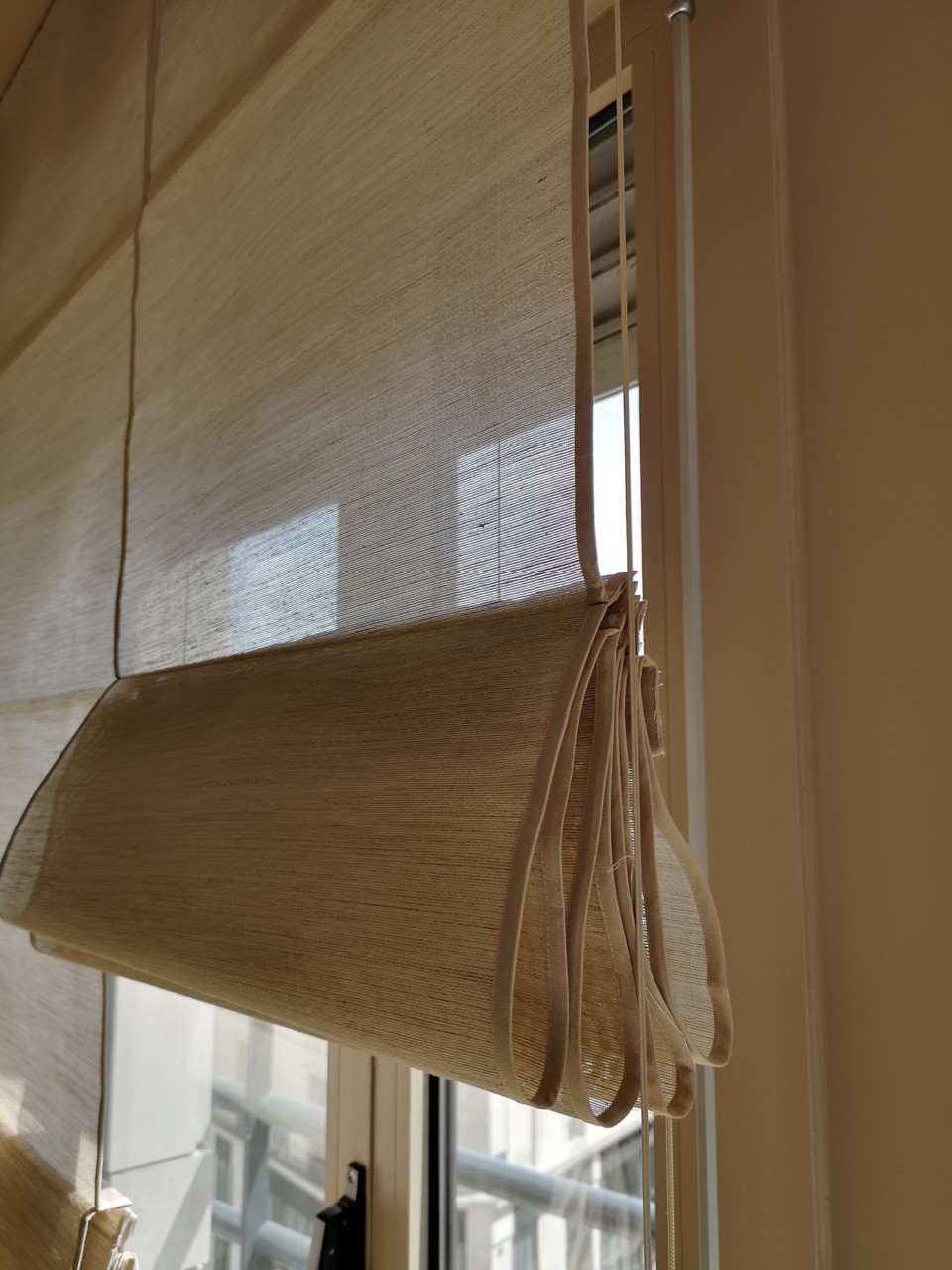 Alchemy of materials for this brand new Ecran collection. Subtle blend of wool, cotton or linen woven on a large polyester weft to create creative and special blinds or sliding panels. Sometimes a tie and dye gradient colors “Ecran” with beige, light grey or anthracite.